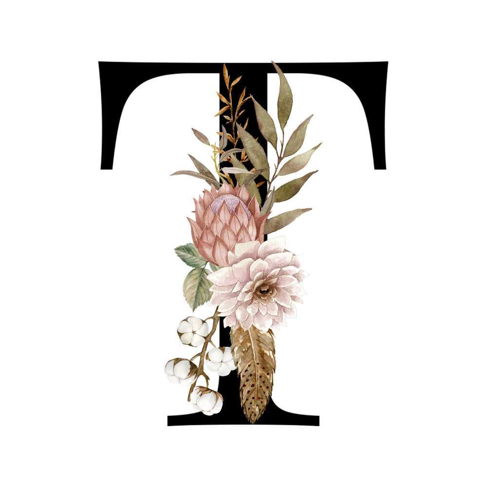 Alphabet with Watercolor Flowers Fabric Panel 23