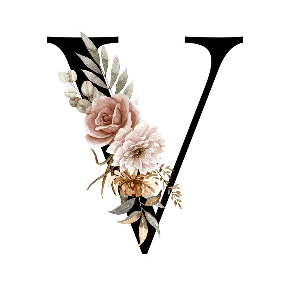 Alphabet with Watercolor Flowers Fabric Panel 25