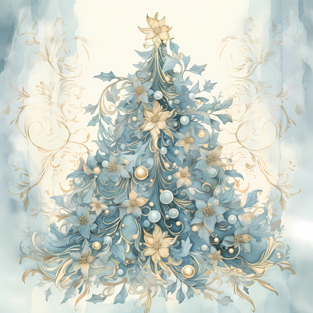 Light Blue and Gold Christmas Fabric Panel 25